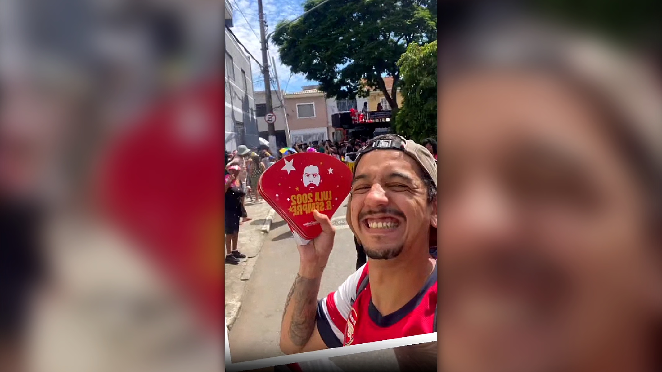 Equipes de parlamentares do PT e do PSol distribuíram abanadores com alusão à reeleição do presidente Luiz Inácio Lula da Silva (PT), em blocos de Carnaval em São Paulo. Os materiais foram distribuídos no sábado (14/2) e neste domingo (15/2) nos blocos Tarado Ni Você, Bloco dos Bancários e Fuá, na região central de São Paulo.