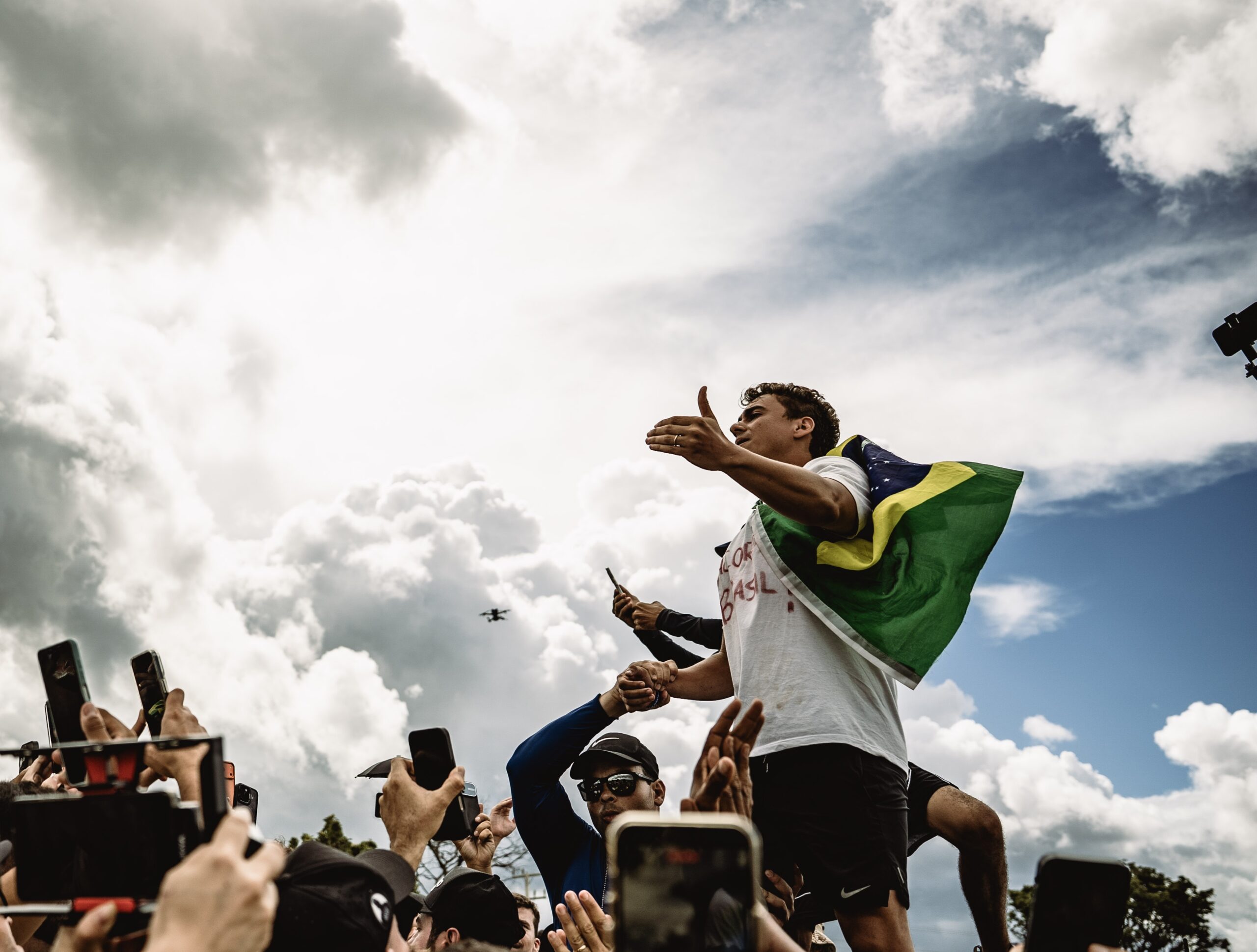 Milhares de manifestantes que participaram dos sete dias de uma caminhada convocada pelo deputado federal Nikolas Ferreira (PL-MG), devem chegar embaixo de uma forte chuva para o protesto “Acorda, Brasil”. Algumas pessoas já estão presentes para o ato ocorre na Praça do Cruzeiro, localizada no Eixo Monumental de Brasília, mas distante 6 quilômetros da Praça dos Três Poderes. (...)