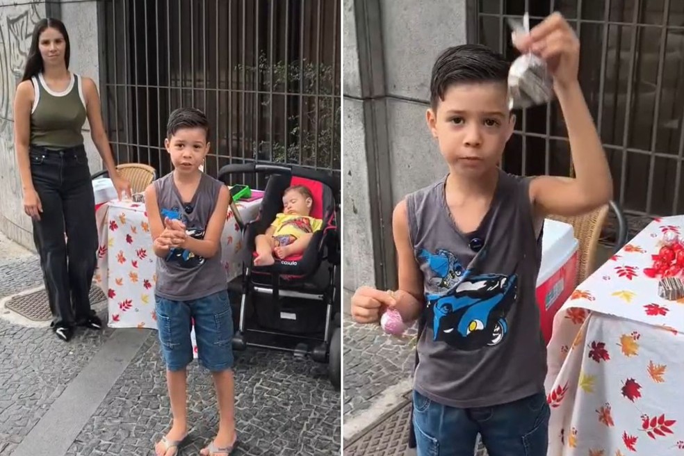 A empreendedora Samantha Angelino viralizou nas redes sociais com um vídeo do filho de 7 anos divulgando os doces que ela vendia em uma mesa montada na Rua XV de Novembro, no Centro de Santos, no litoral de São Paulo (assista acima). Ao g1, a mulher contou que a felicidade com o sucesso durou dois dias, já que foi proibida de continuar no local pela fiscalização da prefeitura. Por meio de nota, a Secretaria das Prefeituras Regionais afirmou que se tratava de venda irregular, realizada sem a licença necessária para o comércio ambulante.