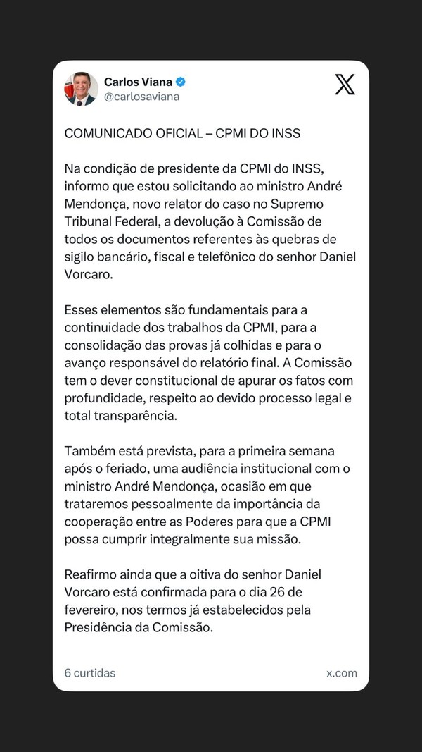 A coluna apurou que a disposição em delatar cresceu após familiares dele virarem alvo das investigações, especialmente depois da prisão de seu filho, Romeu Carvalho Antunes. Ele foi capturado em dezembro do ano passado, acusado de ser o braço do pai no esquema. A CPMI do INSS também mira Tânia Carvalho dos Santos, mulher do Careca do INSS. No ano passado, os parlamentares aprovaram requerimento para tomar o depoimento dela, mas a oitiva ainda não foi agendada. O que tirou o operador do sério.